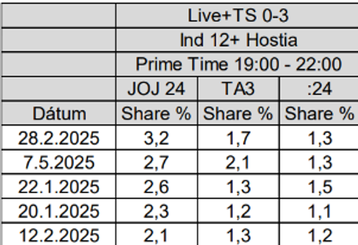 Najsledovanejšie relácie televízie JOJ 24 v CS 12+