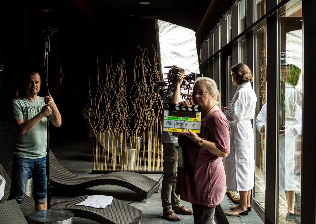 V našom videu uvidíte, ako celá scénka v chladnom apríli vo wellness centre vznikala. Lujza s Majom nakrúcali zvlásť a hlas Dagmar Sanitrovej alias babky Milky suplovala asistentka réžie Maja Breinerová. Zábery so skutočnou babkou sa dotočili zvlásť priamo v dome Rodinovcov.