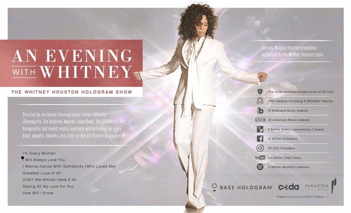 Svetové hologramové turné Whitney Houston sa začne 25. februára vo Veľkej Británii. S blížiacim sa začiatkom turné dostávajú organizátori slovenského koncertu od amerických tvorcov šou detailné podmienky. „Už teraz môžeme povedať, že toto podujatie so sebou prinesie špeciálne požiadavky vzhľadom na unikátnu technológiu, na ktorej je postavené,“ prezrádzajú. „Veľmi detailne sú špecifikované rozmery pódia, rozmiestnenie sedadiel resp. sedenie a kapacita sály - to všetko v záujme dokonalého zobrazenia hologramu.“