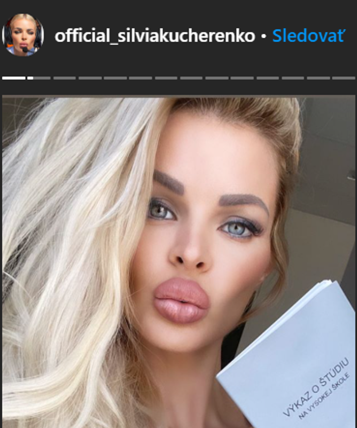 Silvia Kucherenko je na svoje telo i tvár hrdá. Neprajníci jej účty neplatia a nie je ničia práca obdivovať ju, jedine jej samej, tvrdí. Najnovšie pridala na sociálnu sieť video z auta, ktoré zachytáva jej pery. Tie sú aktuálne ešte väčšie ako obvykle. Výsledky tesne po zákroku nie sú síce také, ako budú o pár dní, keď sa kyselina vstrebe, otázkou je, či budú presne také, ako by ich blondína chcela.