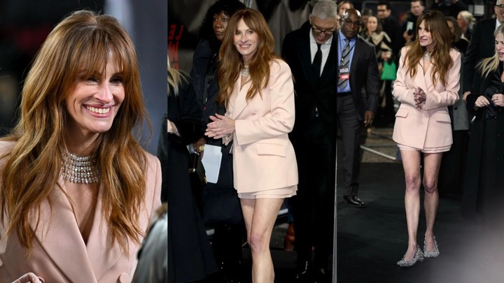 To kvôli nádhernému, vkusnému outfitu, čo zvolila na premiéru jej najnovšieho filmu v Londýne. Vďaka decentnému ružovému kostýmu s krátkymi nohavicami, ktoré zdôraznili jej nekonečne dlhé a štíhle nôžky, sa na ňu sústredila pozornosť celého jej širokého okolia. Jej postava je za tie roky prakticky nemenná, až sa skoro zdá, že nejaký ten tok času (či gravitácie) na ňu nemá žiadny vplyv. Celý outfit bol doplnený pozoruhodnými lodičkami zdobenými striebornými strapcami so sklenenými perličkami, čo dodalo Julliinmu modelu štipku extravagancie – podobne ako masívny náhrdelník, ktorý zdobil krk herečky. Ten bol síce veľmi výrazný, napriek tomu však elegantný a dopĺňajúci celkový vzhľad. Päťdesiatšesťročná Julia má skrátka šarm, ktorý divákov priťahuje po celé desaťročia na rozdávanie!