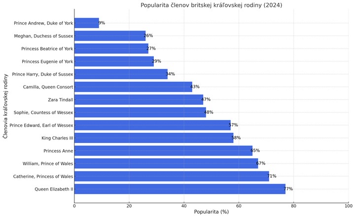 Na poslednej priečke sa umiestnil princ Andrew, ktorý dosiahol iba 9 percent a stal sa najneobľúbenejším členom kráľovskej rodiny.