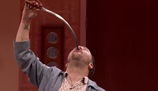Extrém, aký ste ešte nevideli: Hltač mečov ťahá auto ústami s mečom hlboko v krku!