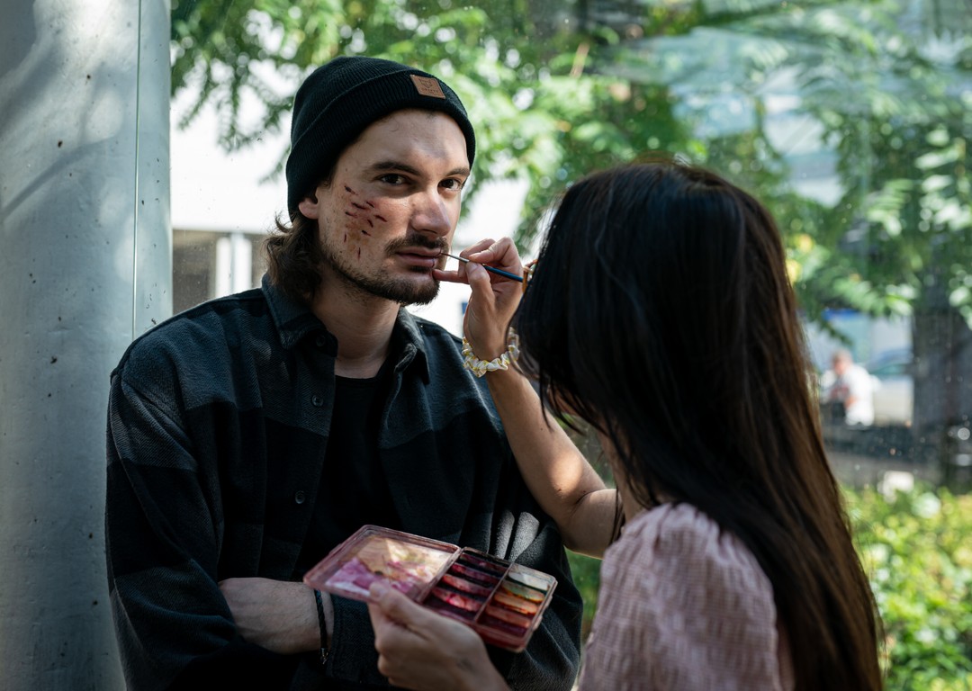 Einstein - nakrúcanie scény na futbalovom štadióne