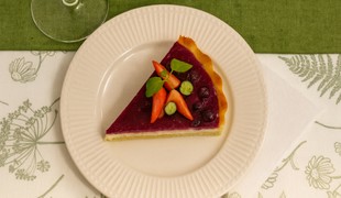 Jogurtový koláč s lesným ovocím a lineckým cestom