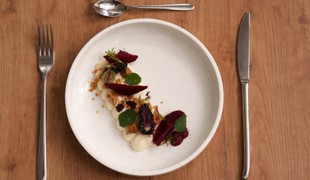 Údený pstruh s emulziou z fermentovaného zeleru a zelerovým crumble