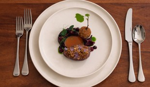 Tatarák zo srnca, krém z olomouckého syra a brusnicový gél