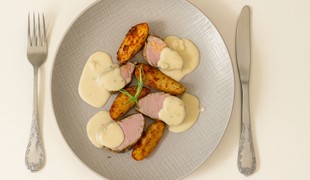 Bravčová panenka s baby zemiakmi a smotanovo-parmezánovou omáčkou